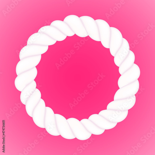 Twisted marshmallow round frame. Soft sweets vector.