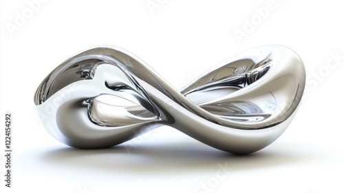 Twisting metallic curves with polished finishes, rendered in a smooth 3D style, on a clean white background