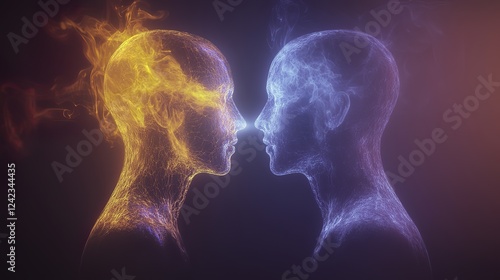 human, connection, abstract, three-dimensional, figure, minimalist, gradient, atmospheric, glowing, interaction, communication, human relationships, teamwork, collaboration, partnership, energy, oneness, harmony, creativity, innovation, technology, digital, futuristic, leadership, inspiration