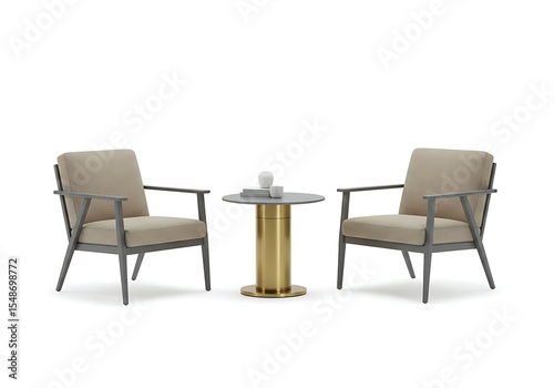 chair, furniture, table, decor, design, interior, cushion, seat, object, metal, modern, style, elegance, comfort, arrangement, image, display, armchair, facing, each
