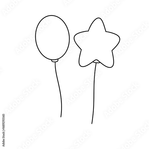 Two balloons and a star are drawn on a white background