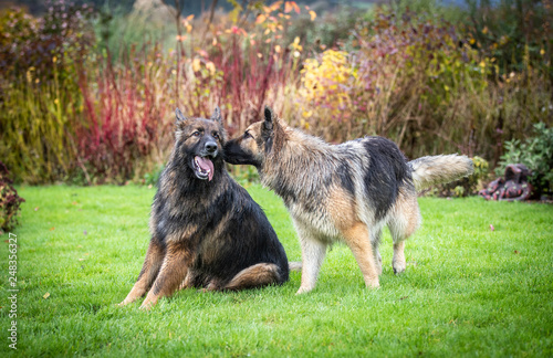 dog, big dog, affection, playing, happy, animal, playmate, big, communicating, german shepherd dog, companion, devotion, pet, friendship, friends, dog, german shepherd dog, alsatian, emotion, autumn, dogwood, autumn, energetic, mammal, fun, furry, flora, garden, grass, large, love, nature, outside, pack, season, shrub, 2, whisper