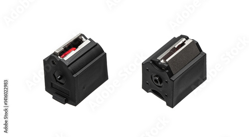mag, rifle, munition, clip, rotary, gun, firearm, weapon, plastic, polymer, black, compact, twin, small, cartridge, reload, tactical, hunting, shooting, equipment, isolated, white, gear, accessory, auto, loader, munition, double, component, bullet, precision, detail, detachable, steel, pair, topview, insert, backup
