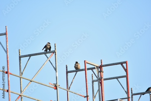 animal, background, beauty, bird, black, blue, cloudless, crow, dark, daytime, freedom, horizontal, isolated, nature, outdoors, scaffolding, sky, smart, 2, wild