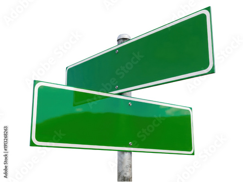 roadsign, street sign, green, blank, directional, guidepost, signpost, navigation, guidance, choice, decision, empty, copy space, highway, route, isolated, dark, transportation, traffic, information, intersection, crossroad, template, horizontal, metallic, rivet, signage, design element
