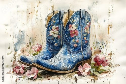 western, cowboy, leather, fashion, boot, footwear, clothing, brown, style, vintage, old, shoe, background, rodeo, pair, foot, retro, cowgirl, rustic, worn, american, ranch, west, closeup, traditional, illustration, summer, wood, wooden, nature, dirty, watercolor, dirt, farm, america, art, country, accessory, red, still, spur, grunge, splatter, dressing, horseriding, farmer, war, painting