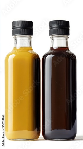 Two Bottles of Condiments: A Golden and Dark Liquid