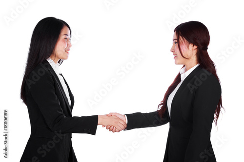 white, business, 2, isolated, happy, people, background, suit, woman, handshake, female, person, hand, hand, team, teamwork, businesswoman, shake, young, modern, caucasian, smile, shaking, work, office, asian, thai, japanese, korean, chinese, black, copy, space, men at work, corporate, meeting, formal, partnership, agreements, deal, beautiful, success, woman, studio, executive, gesture, standing, greeting, successful