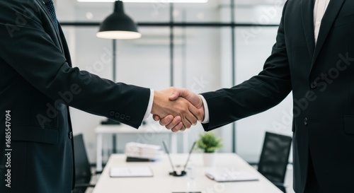 handshake, agreements, business, deal, success, partnership, meeting, office, corporate, professional, team, collaboration, cooperation, man, suit, attaching, hand, table, modern, interior, white, black, lamp, window, plant, chair, glasses, desk, formal, executive, finance, job, leader, manager, negotiation, network, people, strategy, together, trust, uniform, workspace, career, businessman