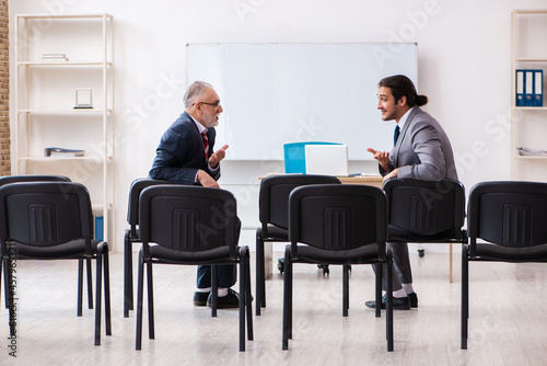Two businessmen in the classroom in pandemic concept