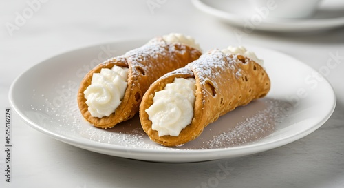cannoli, pastry, cream, powdered sugar, white plate, dessert, italian, sweet, food, baked, delicious, closeup, sugar, ricotta, filling, crispy, shell, treat, epicure, cookery, traditional, fresh, homemade, plate, confectionery, pastry, white background, bakery, snack, tasty, indulgence, culinary, presentation, still life, table, white, background, close