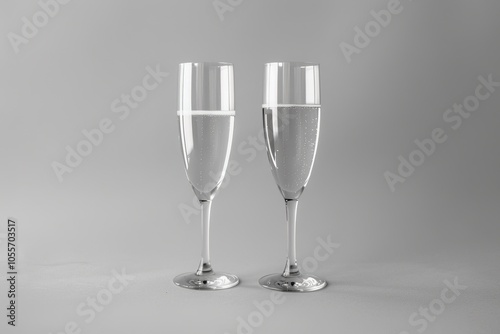champaign, goggles, sparkling, wine, celebration, toast, alcohol, beverage, drink, crystal, elegant, festive, cheer, clink, pair, bubbly, liquid, transparent, glassware, shiny, filled, symmetric, party, luxury, occasion, copy space, empty space, silver, grey background, simplicity, minimalist, anniversary, wedding, new year, reception, happy hour, sophistication, 2, double, glasses, stemware