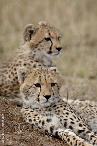 Two Cheetah (Acinonyx jubatus) cubs, Masai Mara National Reserve, Kenya