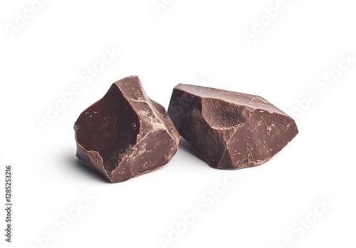 Two Chocolate Pieces Isolated on White Background, Close-up, Rich Cocoa Flavor, Sweet Snack Option