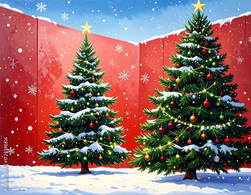 christmas, tree, snow, winter, holiday, decoration, festive, ornament, red, green, beautiful, celebration, winter landscape, design, art, illustration, image, decor, christmas, ornament, background, landscape, snowflake, bright, colourful