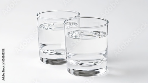 Two Clear Glasses of Water on a Minimalist White Background Generative AI