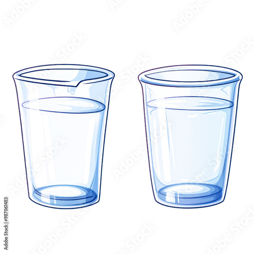 isolated, transparency, hydratation, beverage, container, minimalism, comparison, water, cup, plastic, full, empty, clean, clear, glasses, drink, thirst, transparent, liquid, refreshment, fluid, pair, duet, receptacle, see through, vessel, simple, basic, everyday, ordinary, common, kitchen, household, utensil, lightweight, portable, hard-wearing, practical, economical, versatile, casual attire, modern, plain, bare