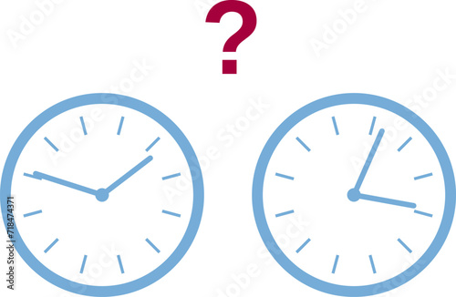 vector, illustration, clock, question mark, time, comparison, conceptual, time management, deadline, scheduling, asking, query, doubt, confusion, choosing, option, alternative, planning, strategy, organizing, efficiency, productivity, punctuality, appointment, meeting, work, office, business, education, question, contrast, difference, hours, minute, white background, icon, graphic, element, concept, illustrate