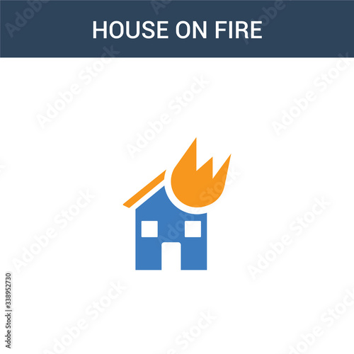 two colored House on fire concept vector icon. 2 color House on fire vector illustration. isolated blue and orange eps icon on white background.