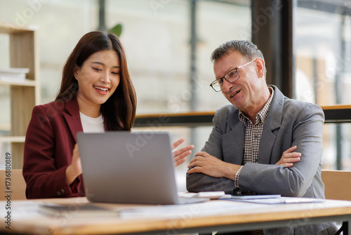 account, team, report, financial, planning, taxation, revenue, tax, inspecting, profit, auditor, office, work, japanese, asian, men at work, document, discussion, woman, business, happy, laptop, talking, employee, female, smiling, manager, teamwork, person, desk, computer, finance, meeting, communication, presentation, corporate, adult, conversation, client, businessperson, businesswoman, workplace, professional, co-worker, colleague, colleague, consulting, discussing, explain