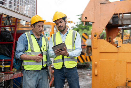 communication, supervisor, site, business, man, construction, work, tablet, factory, industry, engineering, management, safety, machine, manufacturing, hat, maintenance, crane, structure, equipment, helmet, occupation, profession, contractor, vest, civil, architect, walkie-talkie, foreman, technician, professional, confident, hard, hard hat, heavy, male, operator, project, senior, standing, worksite, indian, asian, teamwork, job, development, labor, collaboration