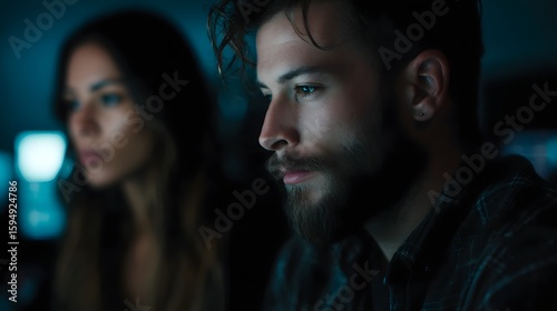 co-worker, sharpened, lighting, teamwork, technology, office, business, professional, task, brainstorming, communication, digital, screen, monitor, device, desk, workplace, corporate, concentrated, analytical, contemplative, determined, serious, intense, thoughtful, attentive, evaluation, research, discussion, planning, development, innovative, strategy, project, efficiency, productivity, interpersonal, leadership, management, organisation, commitment, dedication, accomplishment, success, achievement