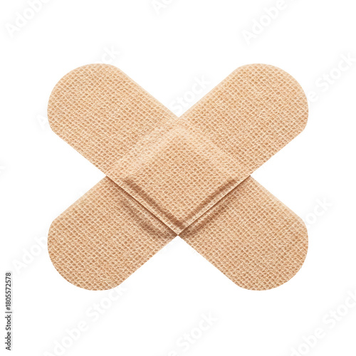 Two crossed bandages with adhesive to cover wounds. The image showing medical supply, isolated on transparent background