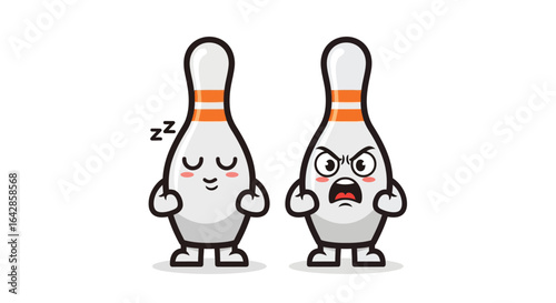 Two Cute Bowling Pins: Sleepy and Angry Expression