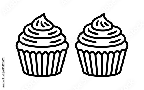 cupcake, dessert, sweet, frosting, icing, vector, illustration, outline, line art, black-and-white, drawing, graphic, design, food, bake, bakery, treat, confection, sugar, cake, art, minimalist, simple, isolated, element, icon