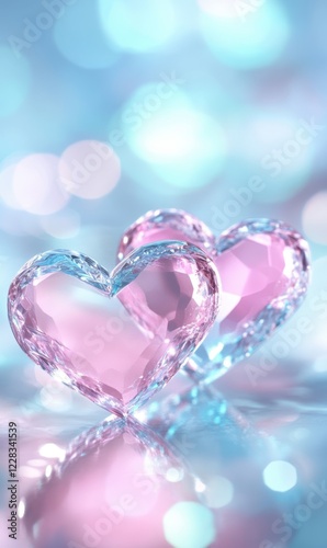 Two delightful pink hearts rest on a gleaming surface, radiating love and warmth, perfect for a romantic Valentine's Day celebration.