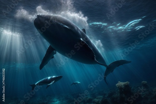 dolphin, swimming, ocean, sunlight, water, ray, graceful, crystal-clear, marin, mammal, underwater, ocean life, aquatic, wildlife, oceanic, playful, nature, coastal, generative, ai