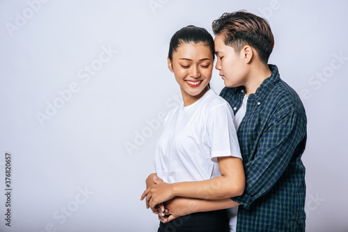 lifestyle, together, human relationships, female, romantic, 2, happy, young, couple, love, people, behind, smiling, hugging, togetherness, romance, woman, man, outside, girl, cheerful, cute, happiness, beautiful, caucasian, girlfriend
