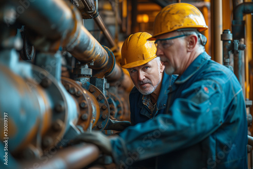 machinery, inspection, industrial plant, men at work, discussion, maintenance, safety, equipment, teamwork, collaboration, mechanical, engineering, occupation, industry, professional, expertise, technical, safety-gear, manual labor, operation, quality control, troubleshooting, monitoring
