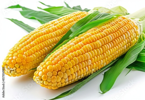 corn, ear, husk, fresh, yellow, green, vegetable, food, harvest, agriculture, healthy, nourishment, diet, cob, kernel, sweet corn, organic, raw, natural, isolated, white background, closeup, macro, photo, still life, summer, nature, produce, ingredient, cooking, maize, cereal, grain, plant, leaf, stalk, crop, field, farm, garden