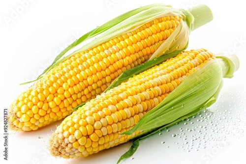 corn, food, vegetable, agriculture, harvest, fresh, healthy, natural, organic, cooking, nourishment, snack, culinary, ingredient, sweet, summer, diet, farm, produce, meal, receipe, epicure, side dish, grilling, boiling, steaming, fiber, vitamin, mineral, colours, texture, stalk, ear, husk, kernel, yellow, green, water, droplet, nature, season, cookery, market, local, seasonal, edible, crunchy, tasty, vibrant