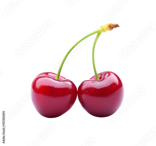 cherry, fruit, food, isolated, red, ripe, berry, sweet, white, healthy, fresh, dessert, juicy, diet, tasty, delicious, stem, macro, green, nature, vegetarian, closeup, summer