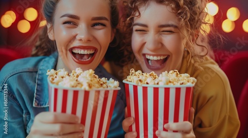 woman, popcorn, food, friendship, laughter, cinema, snack, friends, motion picture, joy, fun, happiness, entertainment, together, tasty, theatre, relaxation, smile, cheerful, bonding, excitement, togetherness, celebration, casual attire, young, lifestyle, bliss, youth, enjoyment, outing, social, blithe, companion, duet, girlfriend, leisure, delight, life events, moment, adventure, lively, film, radiant, relax, girl, try