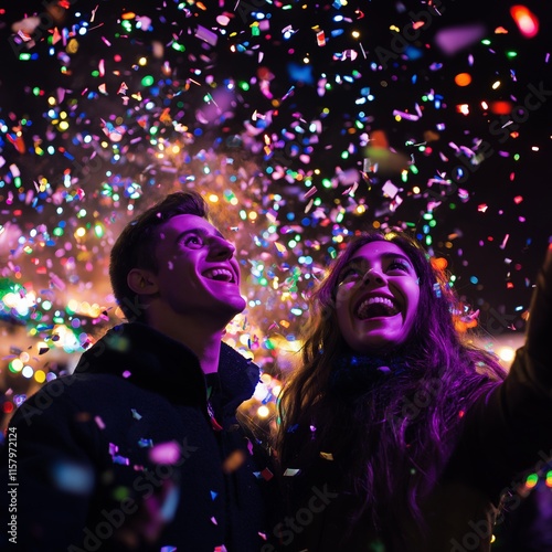 couple, celebration, joy, confetti, light, laughter, fun, happiness, togetherness, colours, sparkle, emotion, shared, magic, ambience, vibe, season, youth, festive, cheer, wonder, smile, beauty, spirit, party, charme, warmth, delight, adventure, glowing, bliss, moment, sharing, joyfulness, memory, reflections, bonding