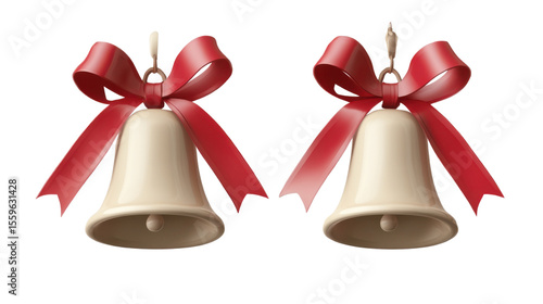 christmas, bell, gold, ribbon, festive, holiday, celebration, ornament, red ribbon, decorative, seasonal, gold, jingle, winter, new year, render, digital artwork, elegant, joyful, isolated, white background, christmas spirit, merry, traditional, decoration, glossy, festive season, metallic