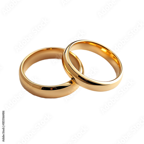 Two gold wedding rings symbol of love and commitment isolated on white background for design