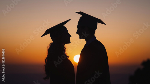 Two Graduates Silhouetted Against a Sunset, Symbolizing New Beginnings and Achievements