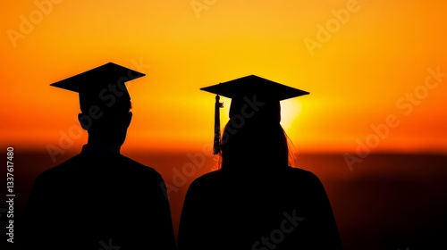Two Graduates Silhouetted Against a Sunset, Symbolizing New Beginnings and Achievements