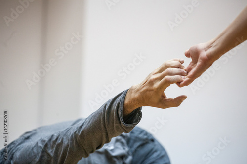 two hand dance.The hands of the dancers are drawn to each other.dancers' hands support each other