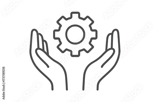 Two Hands Holding Gear Icon, Simple Thin Line Vector Illustration for Websites, Apps, Cards with Transparent Background, Concept of Support and Technology Management