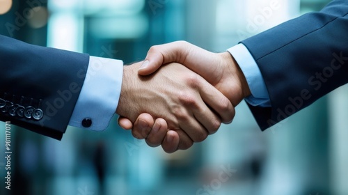 Two hands meeting in a firm handshake conveying a sense of partnership and trust in a professional business setting