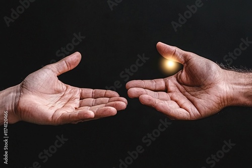 hand, achieving, dark, light, connection, emotion, hope, oneness, gesture, pose, atmosphere, symbol, creative, abstract, togetherness, warmth, outstretched, finger, diverse, expressive, closeup, collaboration, lighting, narrative, aethereal, interaction, support, intimacy, balance, human, care, sharing, touch, significance, hugs, moment, culture, communication, spiritual, grace, endeavour, visual, softness