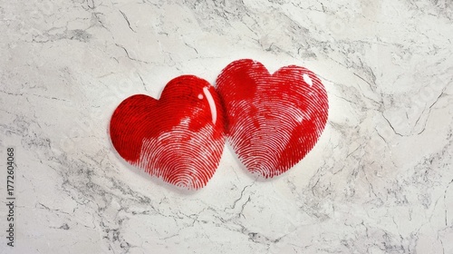 Two Heart-Shaped Patterns with Fingerprints on White Marble Background