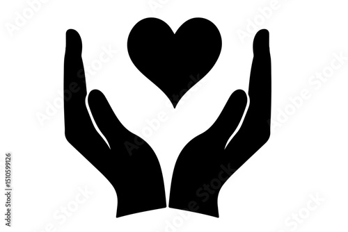 two human hand and heart silhouette Heart in hand icons set, Healthcare,Donation and giving aid concept , Hands holding heart icon