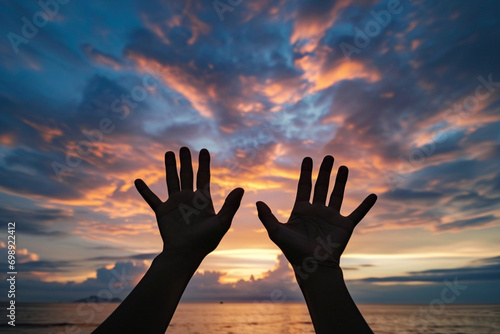 human, palm, outstretched, ray, rising sun, faith, hope, spiritual, meditation, belief, worship, divine, sunrise, inspiration, connection, sunlight, symbolic, tranquil, serenity, uplifting, hand, morning, renewal, peaceful, symbol, harmony, silhouette, devotion, radiant, prayer, hopeful