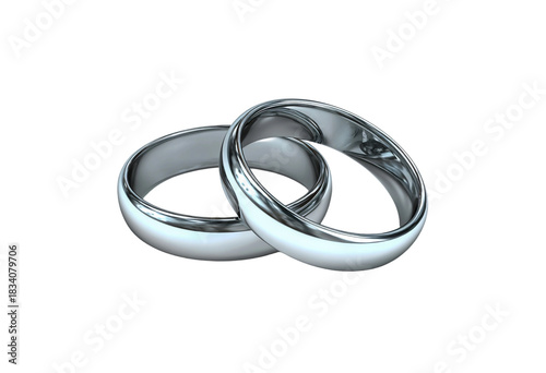 Two intertwined silver wedding rings symbolizing love and commitment isolated on transparent background